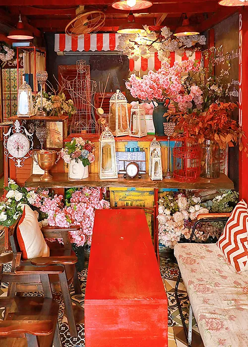 Các vật dụng trang trí mang hơi hướng hoài cổ cũng để lại dấu ấn rất riêng, từ chiếc xe đạp được sơn đỏ, đĩa hát, bốt điện thoại đến những bức tranh treo tường. Cùng với đó là những lời tâm tình và content trendy. Đến giờ mình vẫn còn ấn tượng với câu “Mấy ai đi qua thương nhớ mà quên được nhau”.