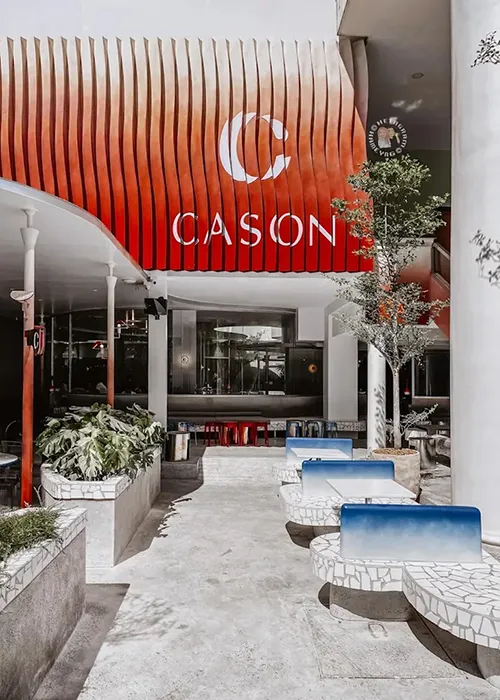 Đặc trưng trong không gian của Cason là các băng ghế dài với lớp đệm êm ái. Một số băng ghế được xếp nối tiếp với nhau tạo nên bố cục liền mạch, gọn gàng. Cách bố trí này không chỉ giúp tối ưu hóa không gian, mà còn mang lại cảm giác rộng rãi, đồng nhất.