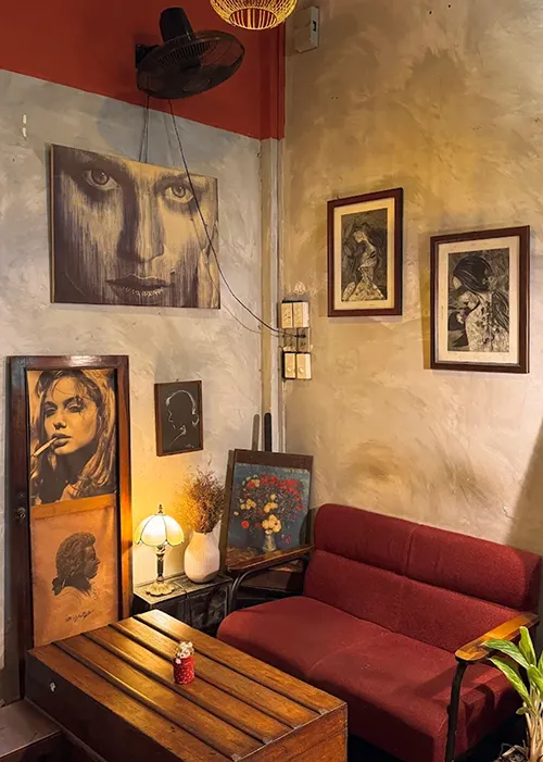 - Cafe Hoàng Thị (Tầng 1): Tranh nghệ thuật, hơi hướng phóng khoáng, phong trần